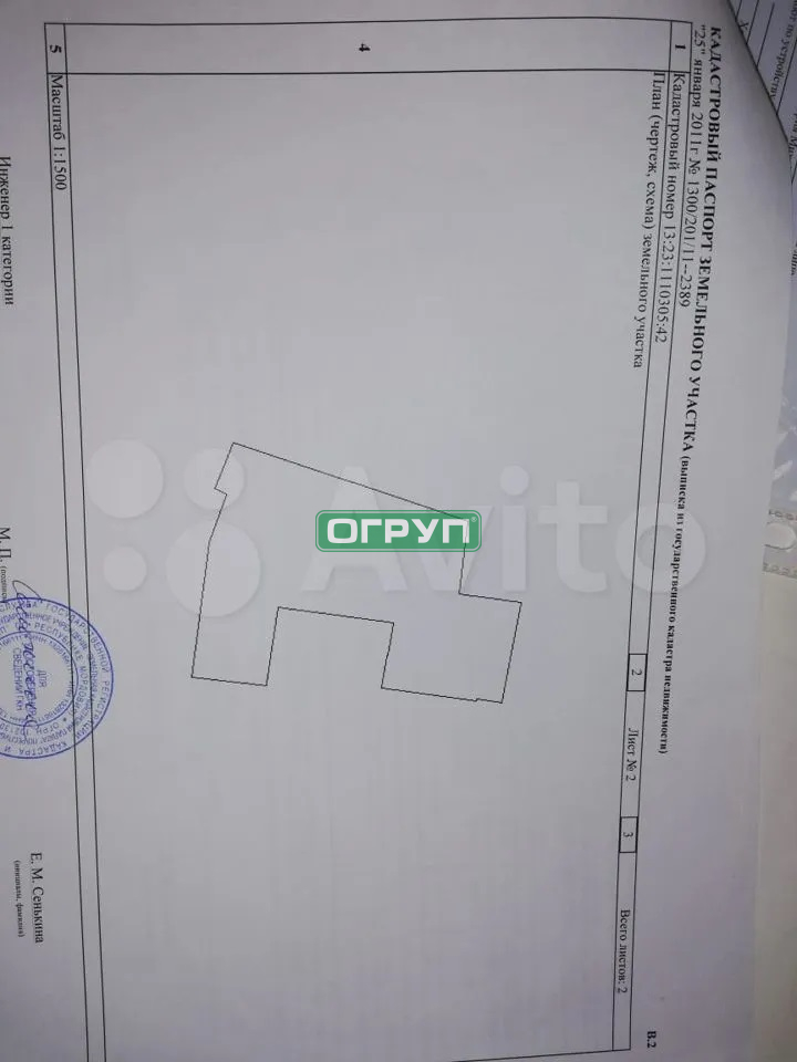 - Земельный участок, площадь 6733 кв.м., кадастровый номер 13:23:1110305:42