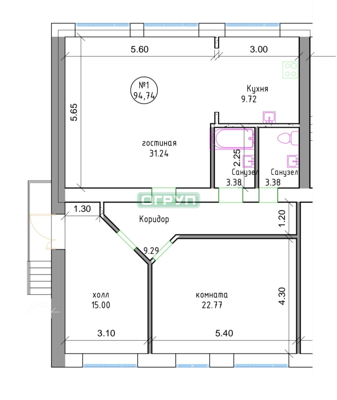 | Комнат в квартире | 1 |